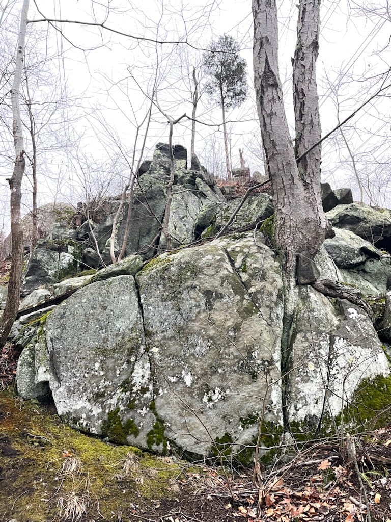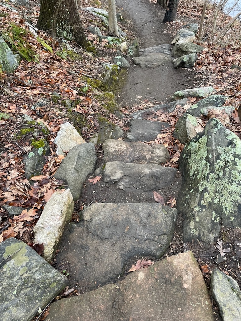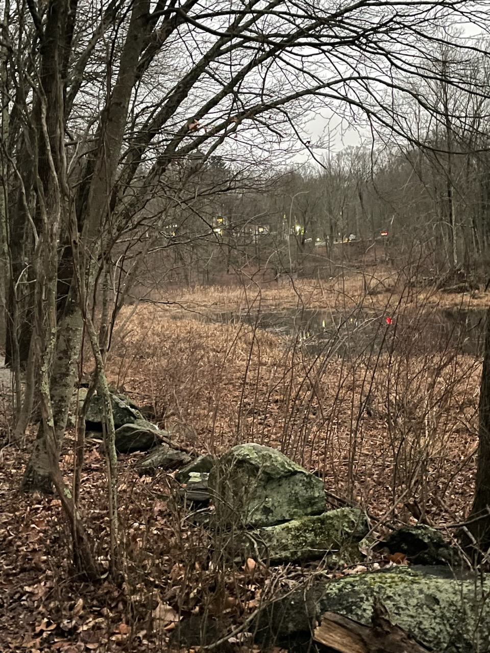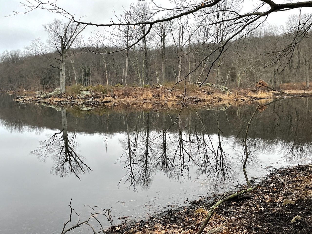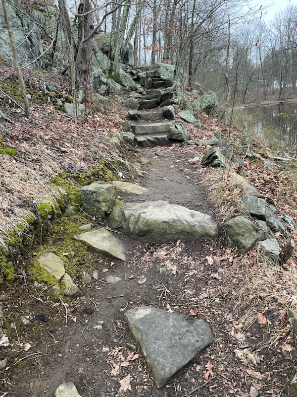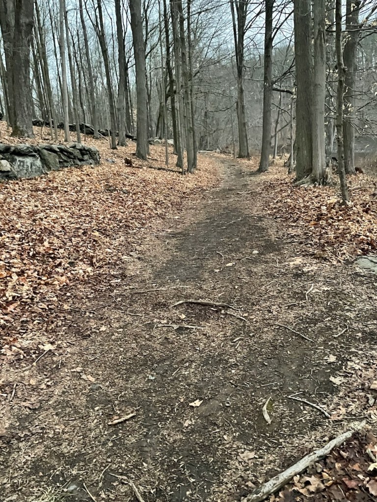 I’m hiking the opposite direction of the way I usually go. Clockwise, starting in the wildflower tract, now of course devoid of flowers in winter. The lake itself at the 1,000-acre Teatown Lake Reservation was created in 1924 when Bailey’s Brook was dammed.