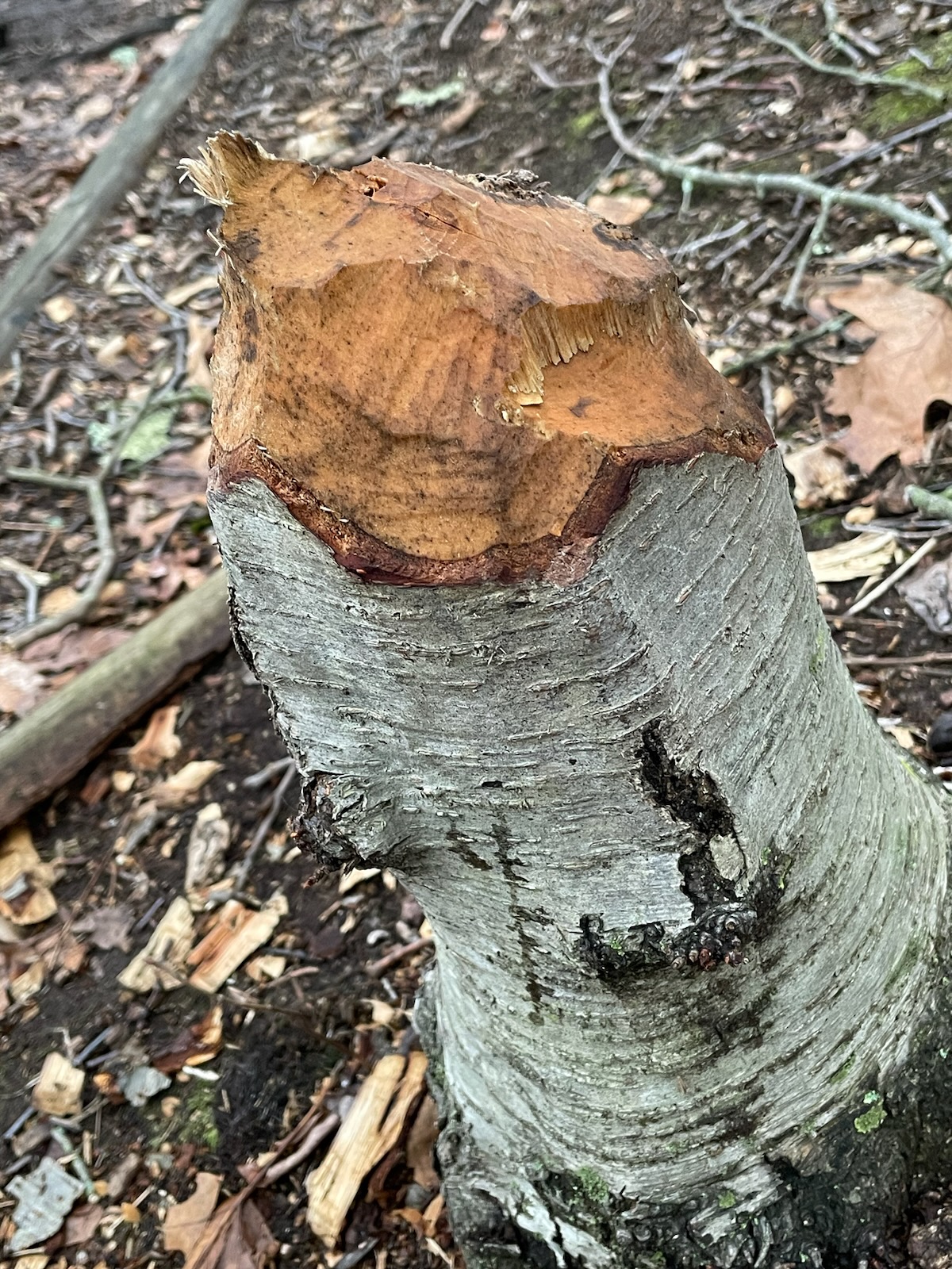 If a wolf inhabited these woods. Which is improbable. Bears, though, might. And beavers, definitely. Evidence of their newly gnawed work abounds.