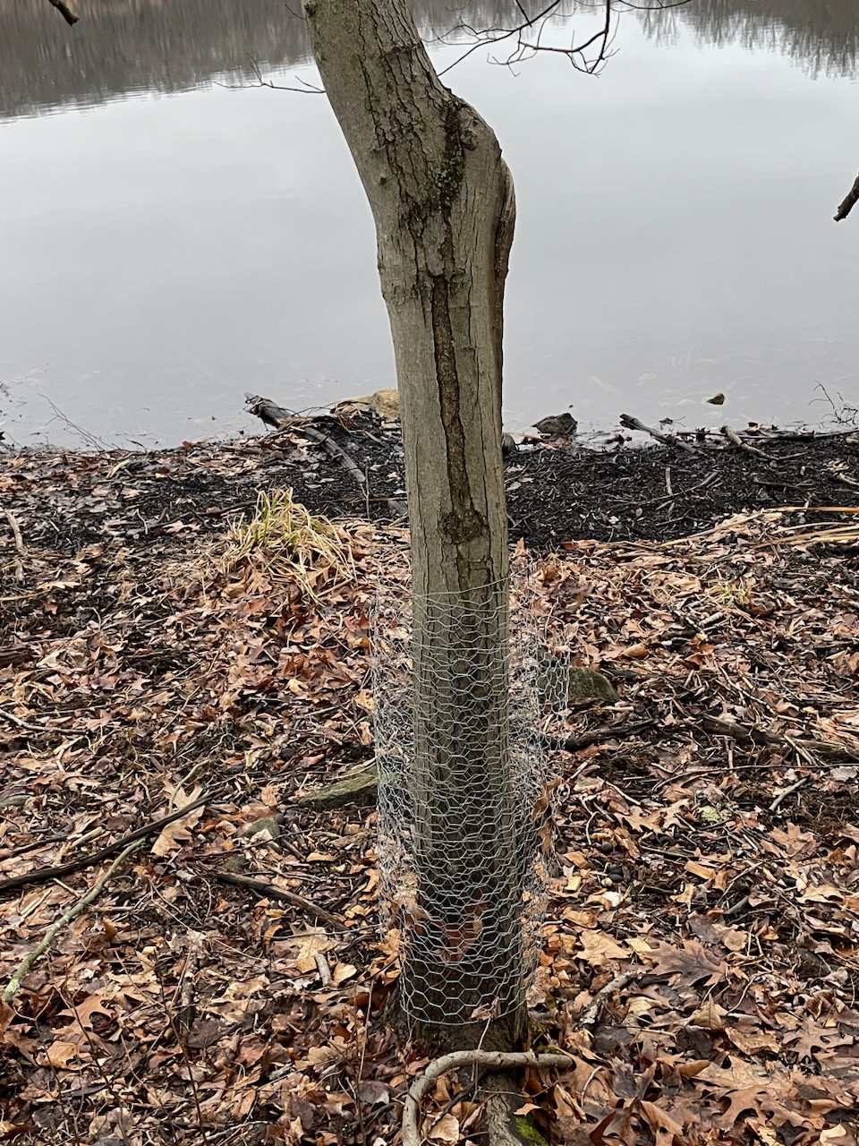 Scouting for beaver dens. Where are they? I see protection against them all over the shoreline.
