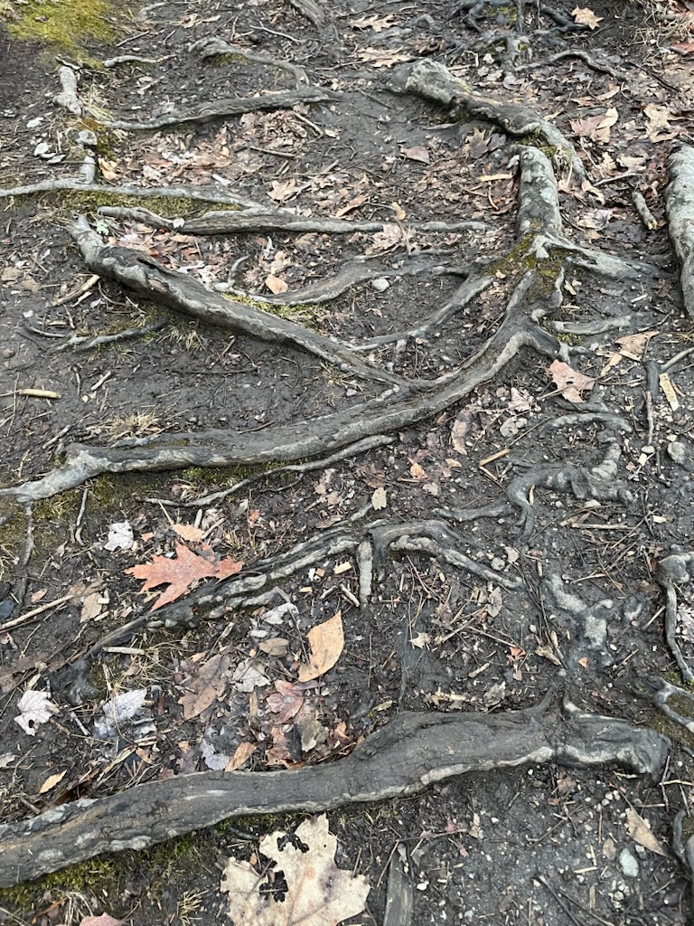 The roots that sprawl over the path. My only worry here is that I might trip and break an ankle, so I take it slow.