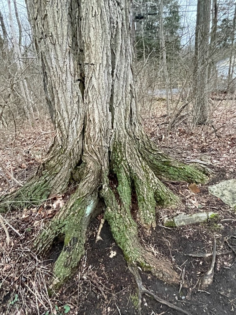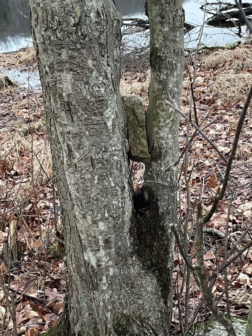 Probably more comical if you’re a tree person. Will someone please explain what happened here, that a stone wound up grasped between twin trunks?