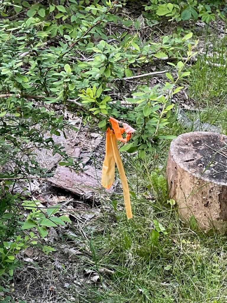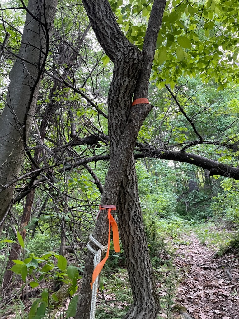 They’ve been marked by ribbons as though ready for their close up. And a knotted rope placed there to help in the descent.