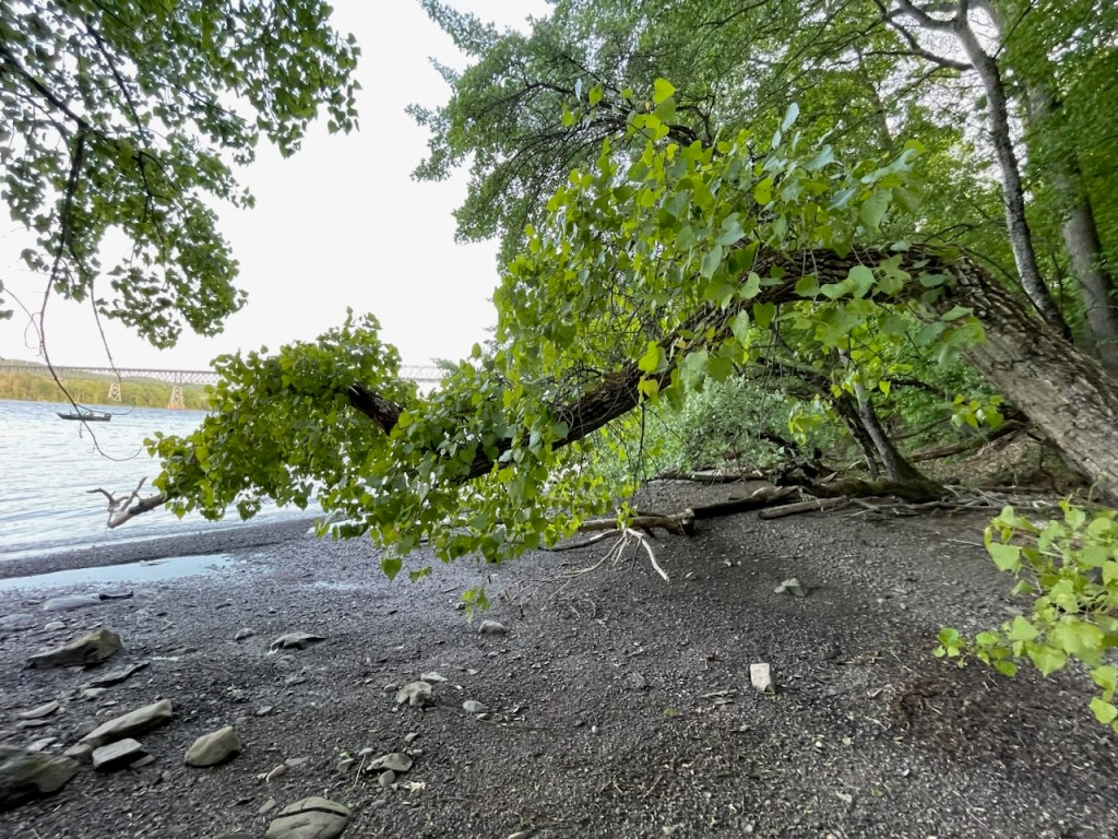 Finally, the beach. First, an Eastern cottonwood stretches itself out on the shore.