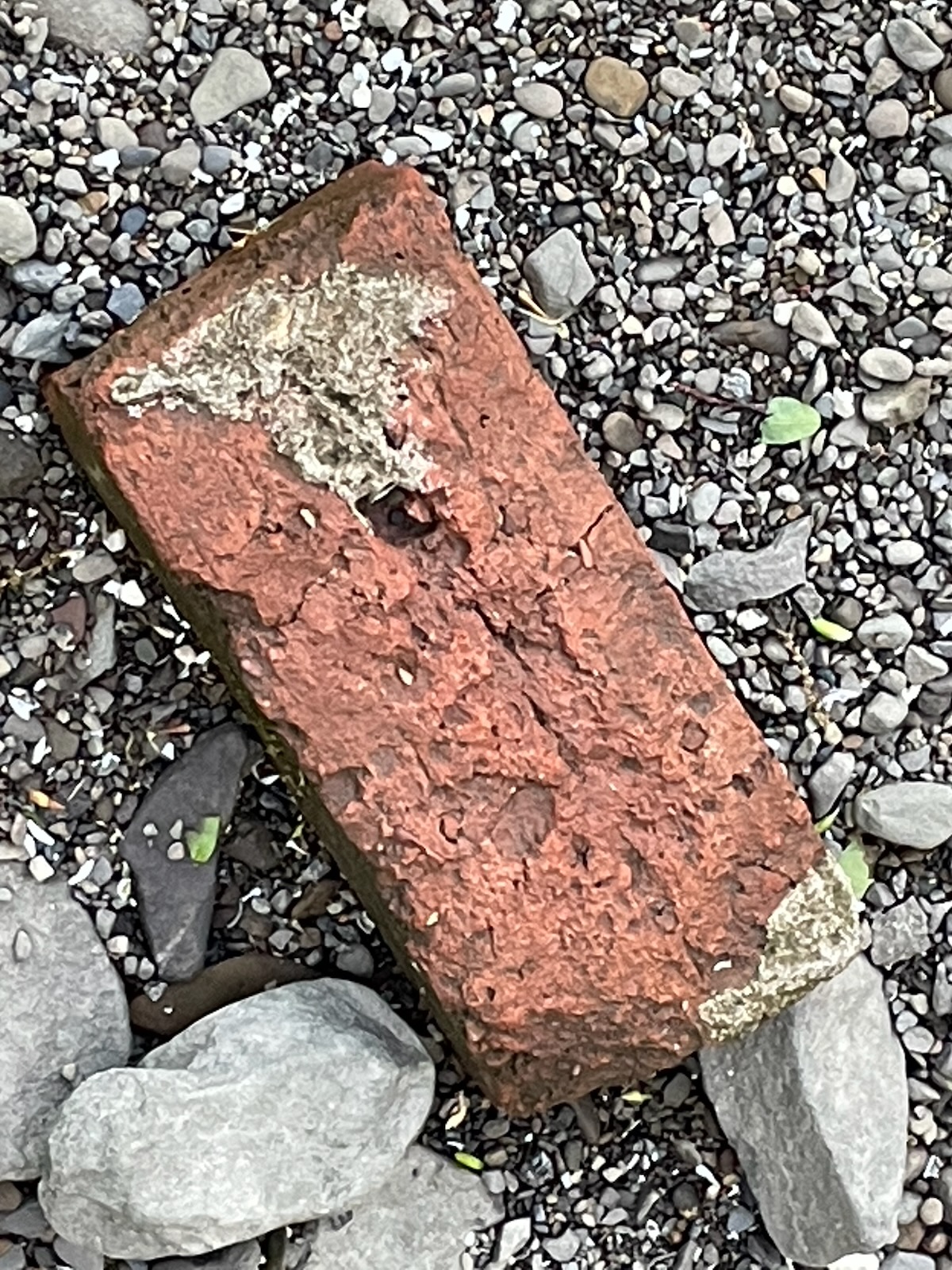 I find an ancient brick, probably from one of the historic Hudson River brickyards back in the day.