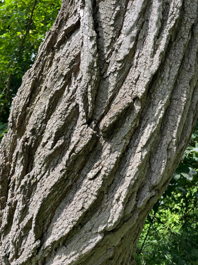 Finally I reach the trail. I greet some old friends as I go. A muscular basswood.