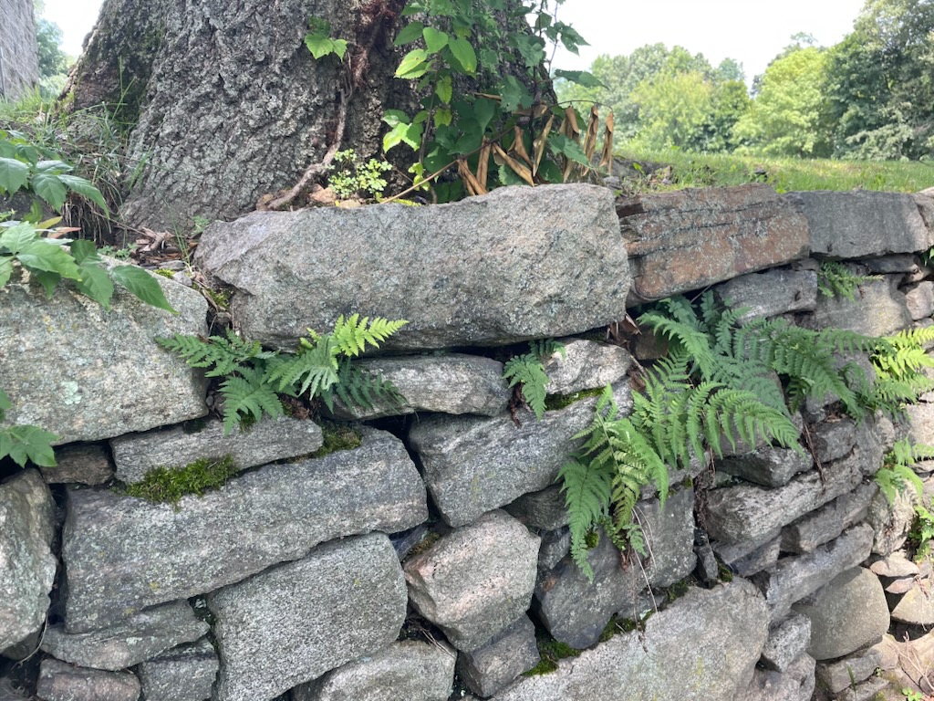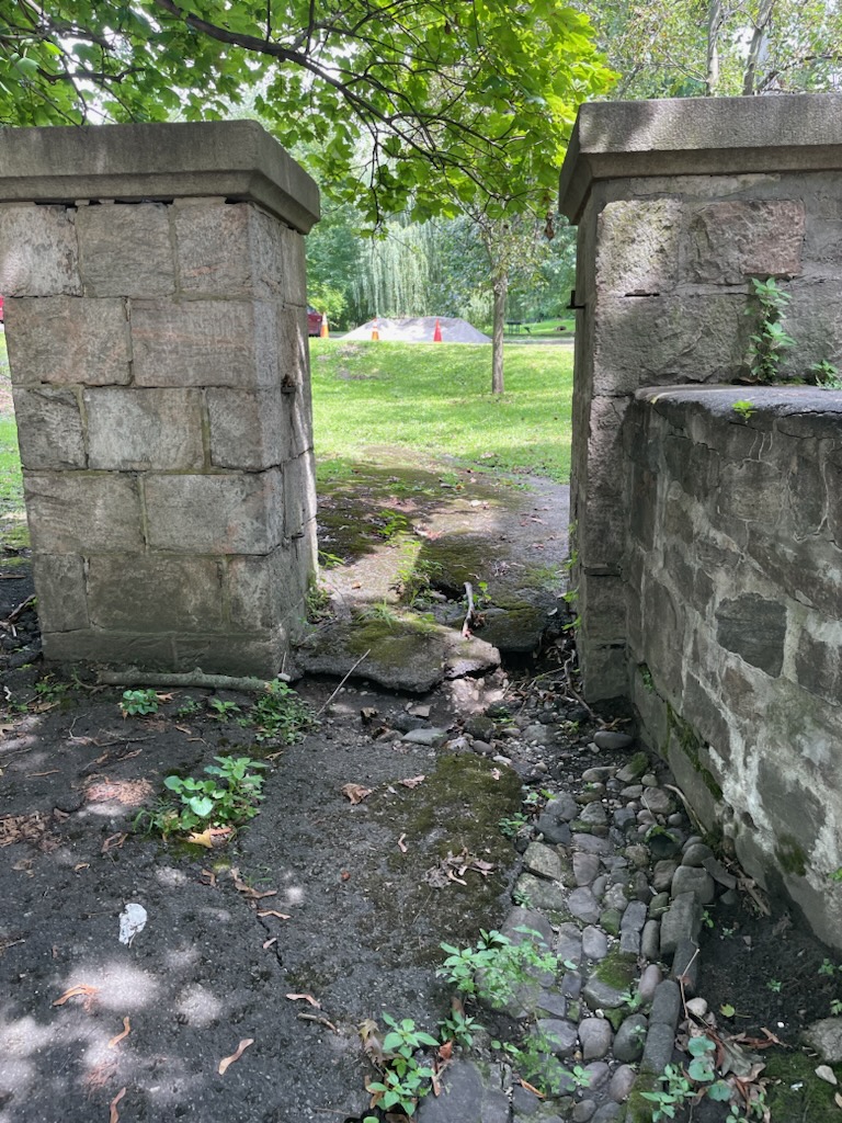 The stone walls along the allee tell a story, as stone walls always do. In this case, probably a talel of immigrant stone masons wanting to make good in America. They risked their lives to provide pure drinking water to families like the Minturns.