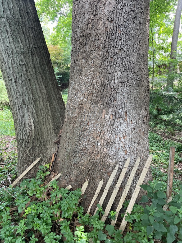 A pair of “husband-and-wife trees,” conjoined trees, a Northern red oak and a sycamore.