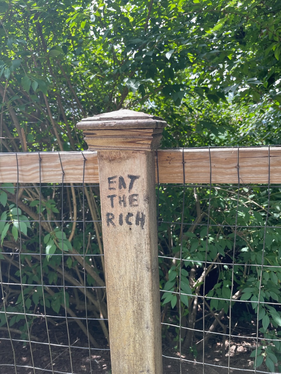 Along the way I pass the Village’s community gardens, expansive plots that are well-used by locals despite the expansive properties many own. Eat the Rich, indeed.