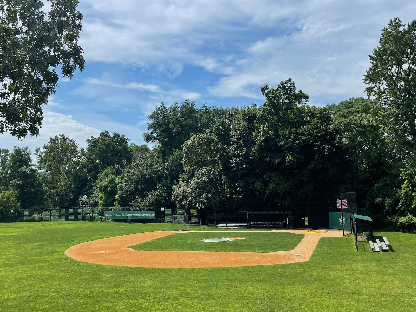 I see the spiffily manicured baseball diamond on land formerly occupied by an old forgotten estate.