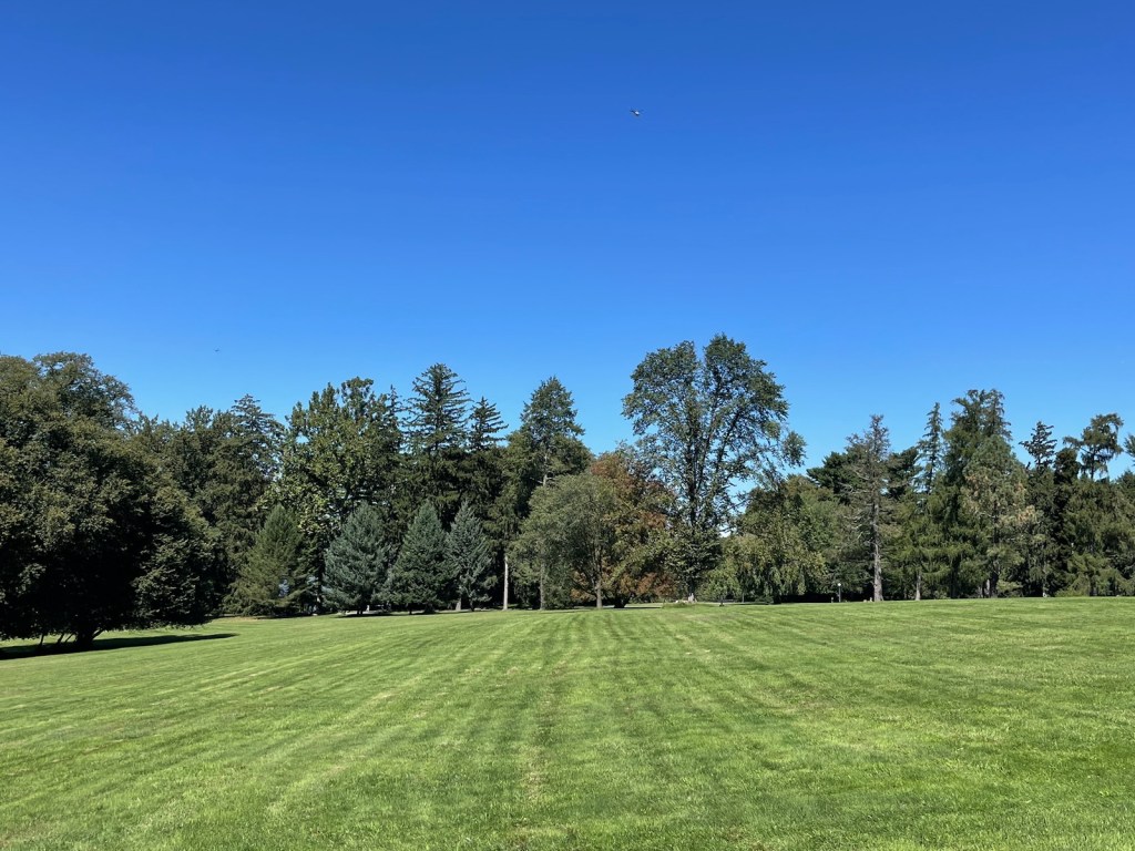 The lawns and old, old trees beckon. Robert Graves wrote, Tranquility is of no poetic use. I beg to disagree. This morning is sheer poetry. The calming late-summer scents of grass and trees, the hum of insects, the perfect glaze of sky.