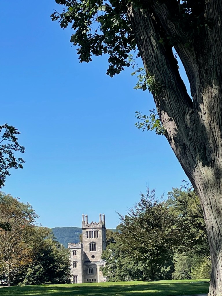 The Lyndhurst faux castle looms ahead.