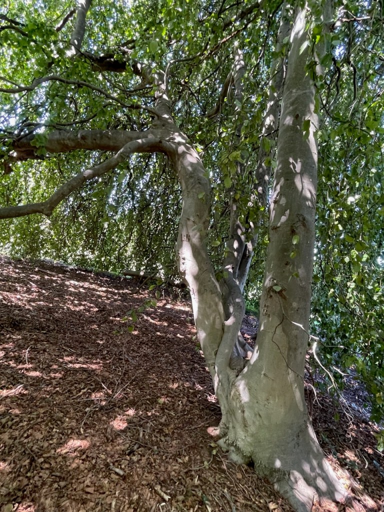 Seeking even greater privacy, greater tranquility, I visit one of the gargantuan, ancient weeping beeches on the grounds,