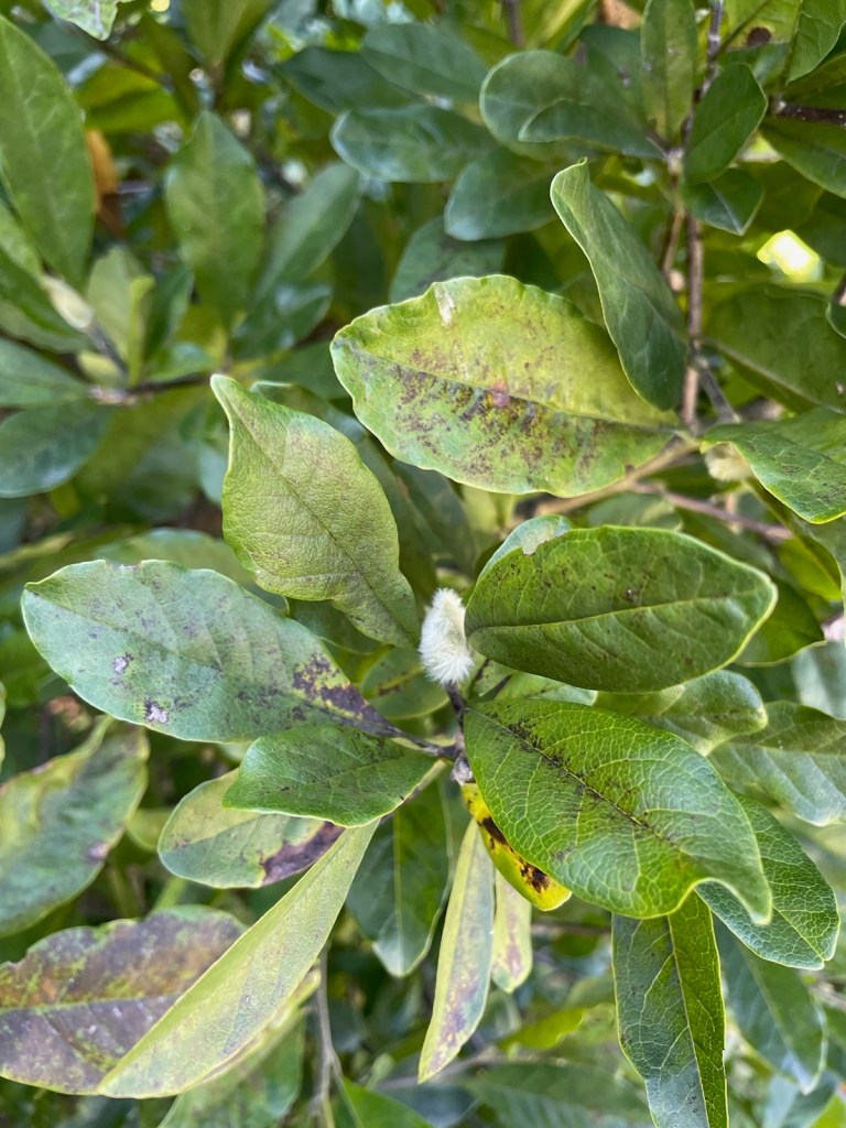 The tiny fuzz of a magnolia after it has had its spectacular blooms. A secret you need to really look to see.