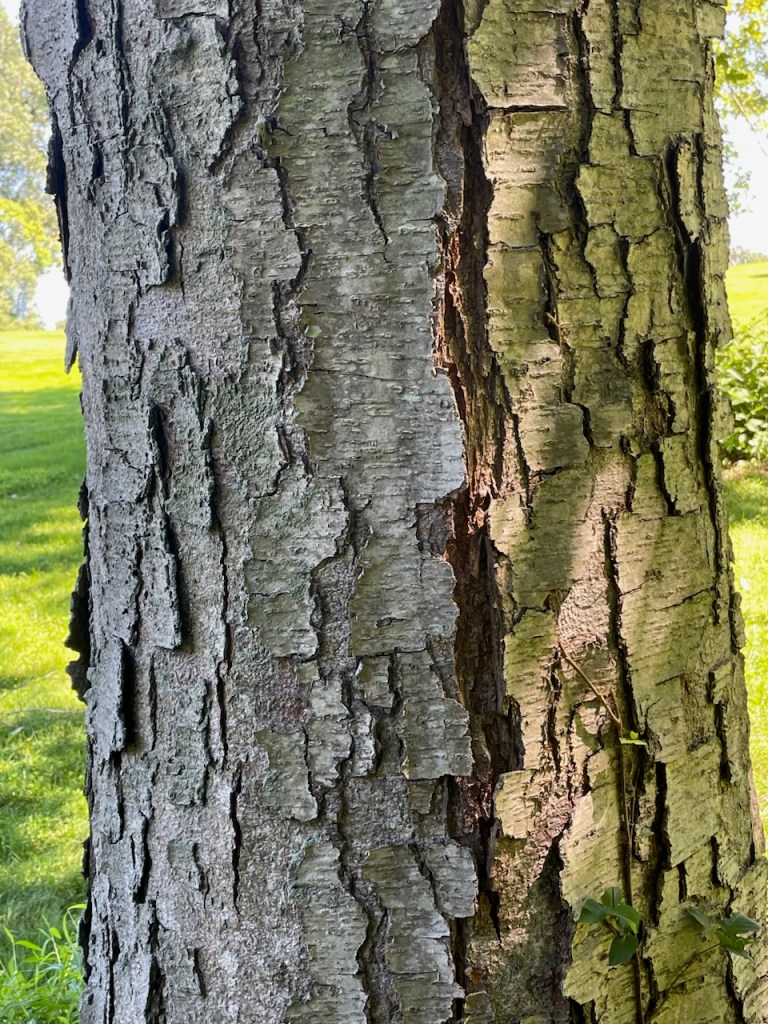 Now, in its dotage, all its trees mature, rough, tried by time and weather. A sweet birch with time-scaled bark.