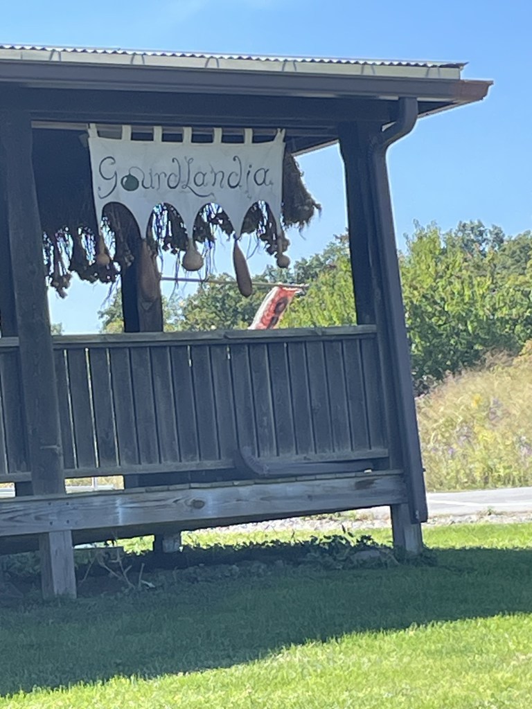 Admire the gourds ripening in a small field nearby.