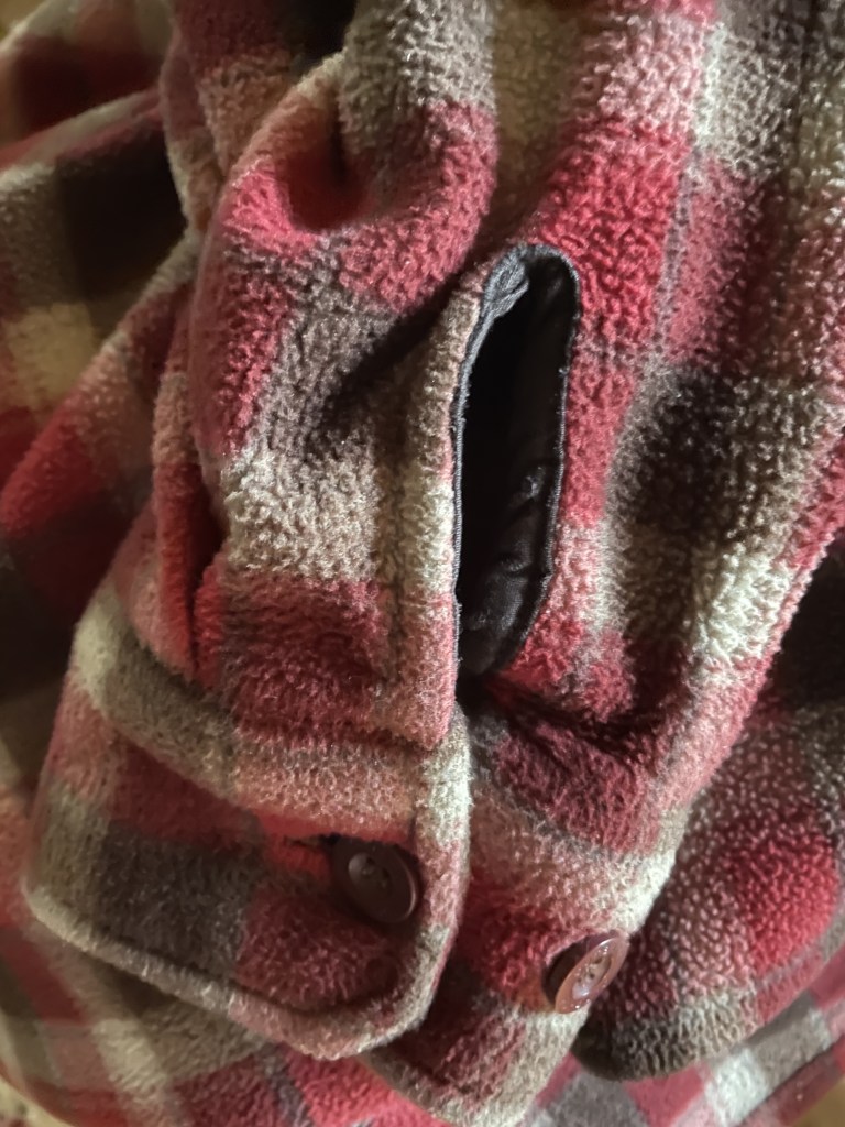 Wearing my father’s thick flannel shirt.