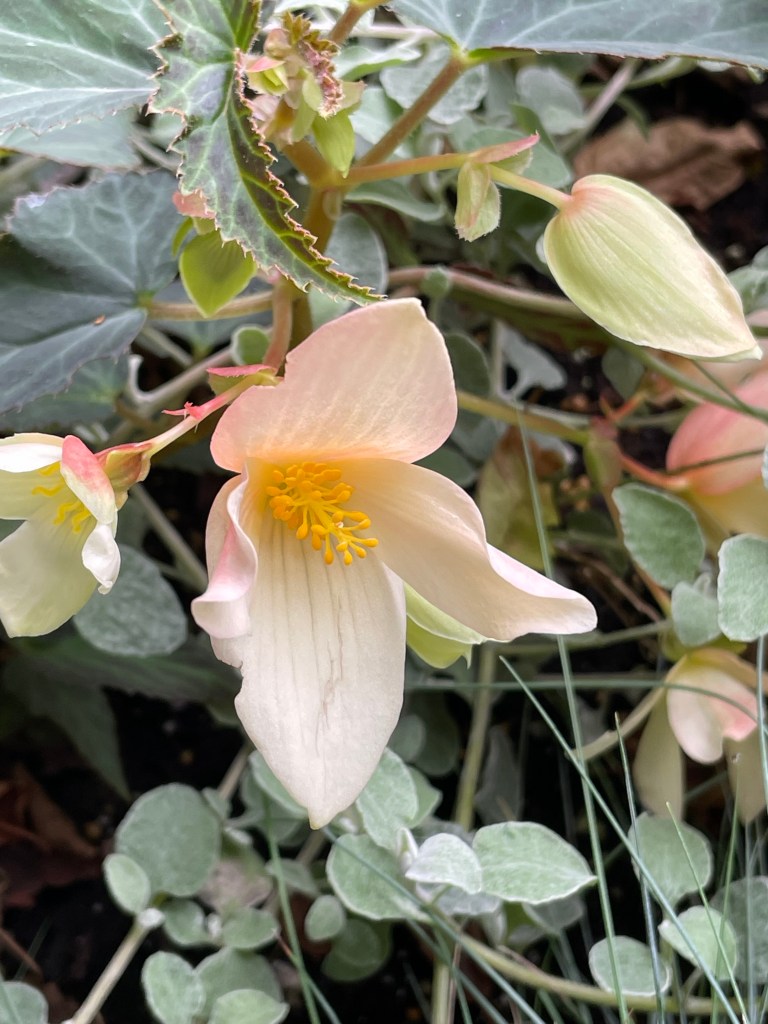 This tree probably predated the adjoining building. Oh, just a boring begonia.