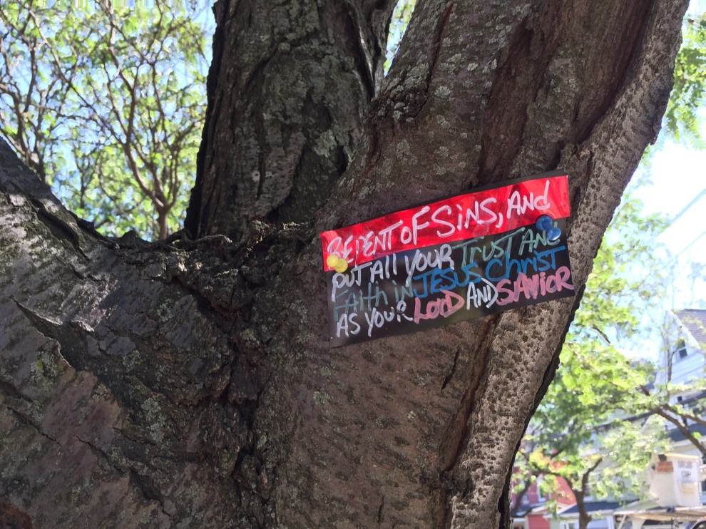 The wind blows grit against the skin of my face, in my eyes. I nearly got whacked on the head by a metal store sign that had come loose and was flapping back and forth. Young people in safety vests walk the street with a garbage container on wheels and long handled dustpans, but they can’t possibly pick up all the trash as it swirls around them. The city doesn’t bother with public trash containers in the Bronx, it seems.