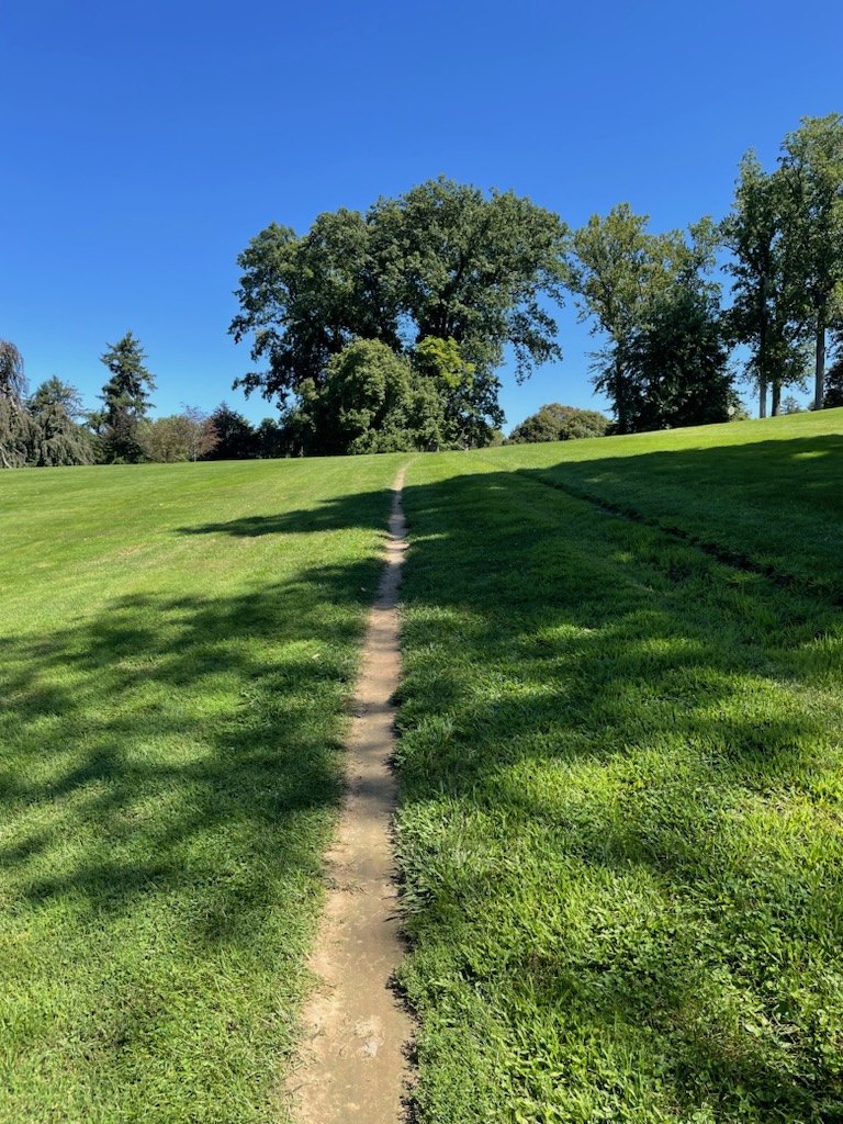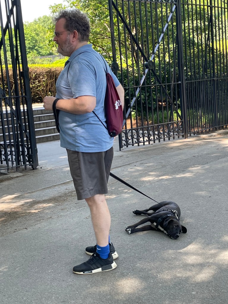 Poseidon, a proud Cane Corso, would not be caught dead in a dog run. But Poseidon’s helpful person directs us down the hill and up the “unmarked trail” to the spot. She has me at “unmarked trail,” my favorite kind of path. We locate the huge old cherry.