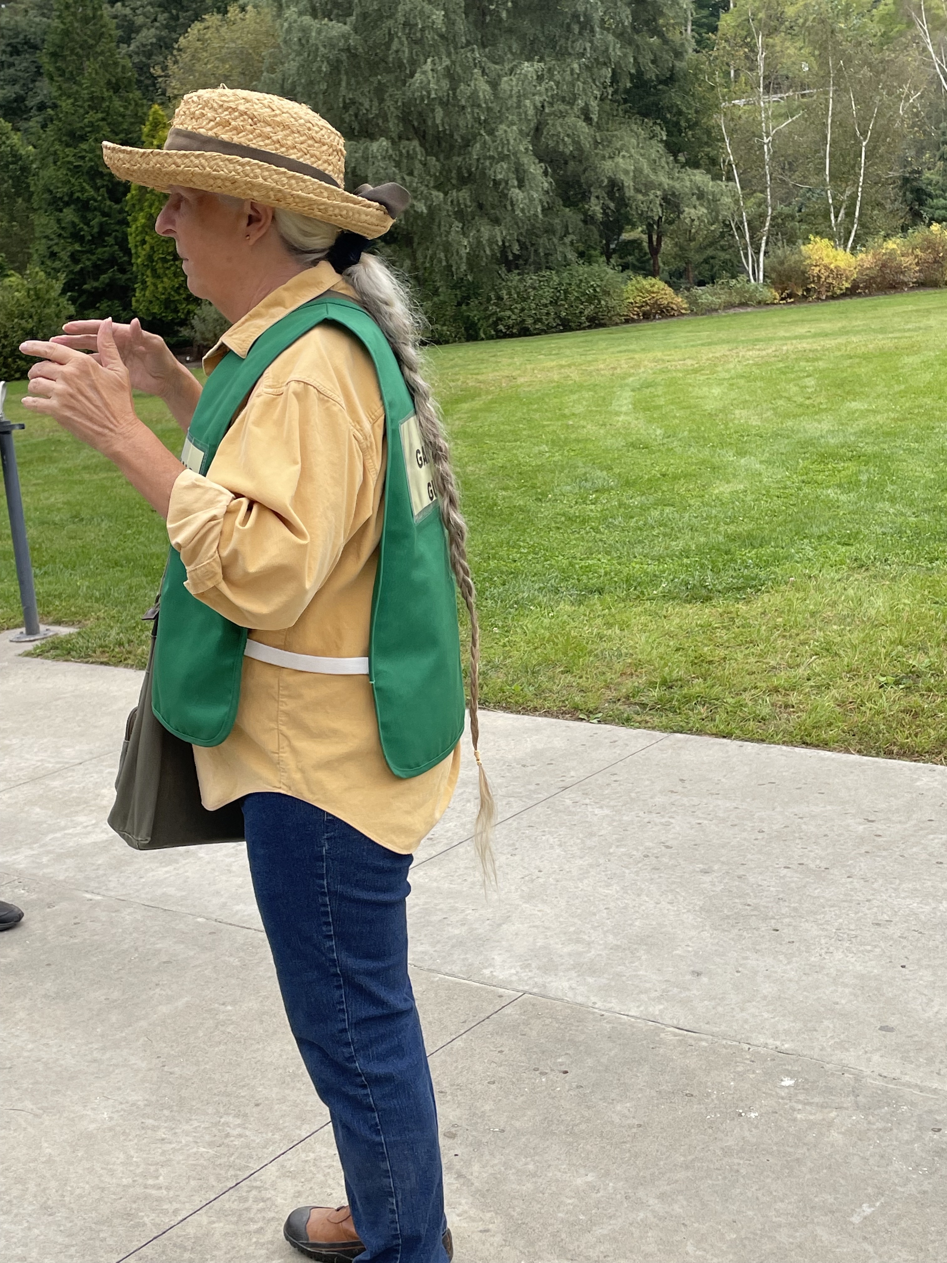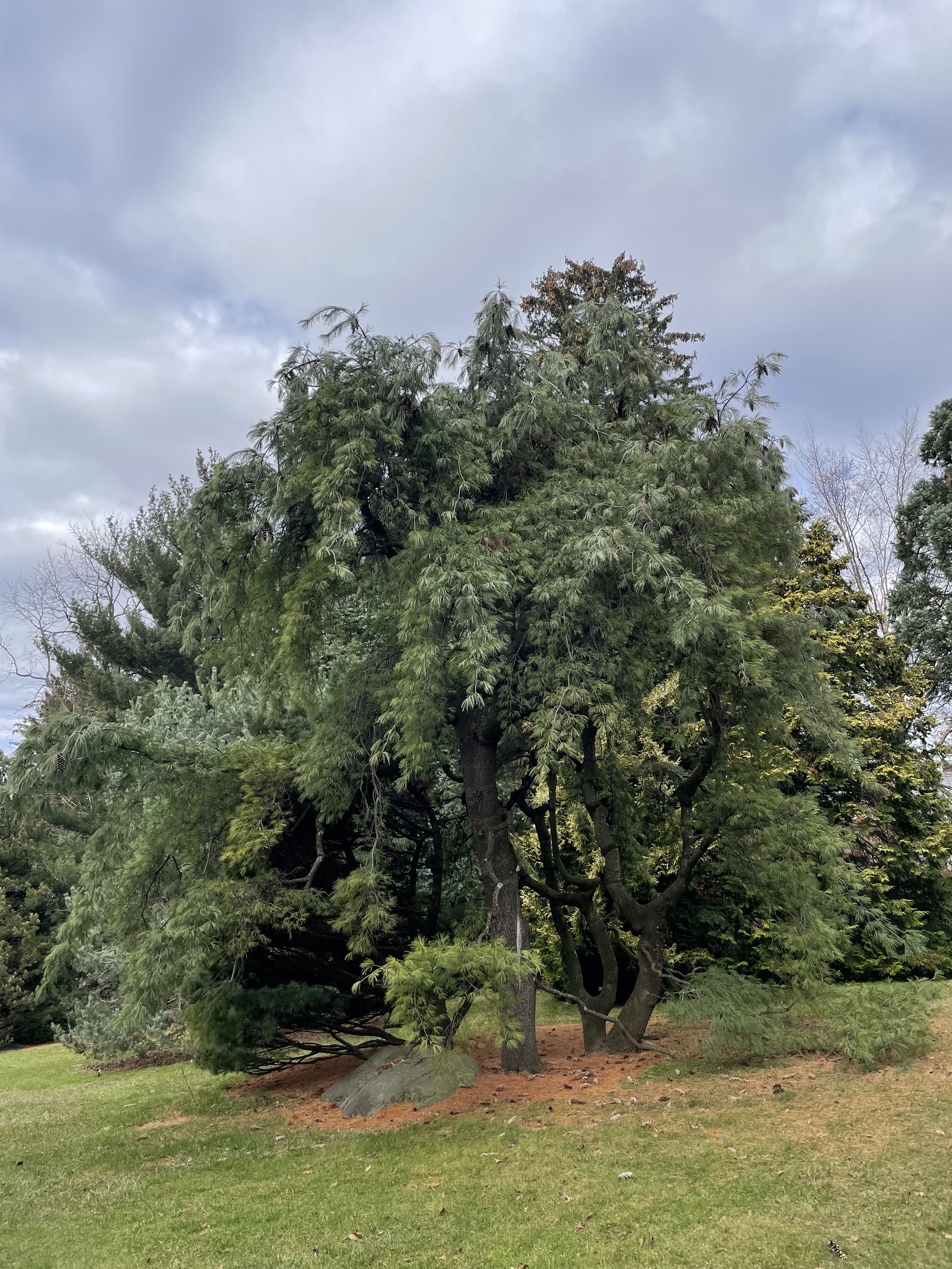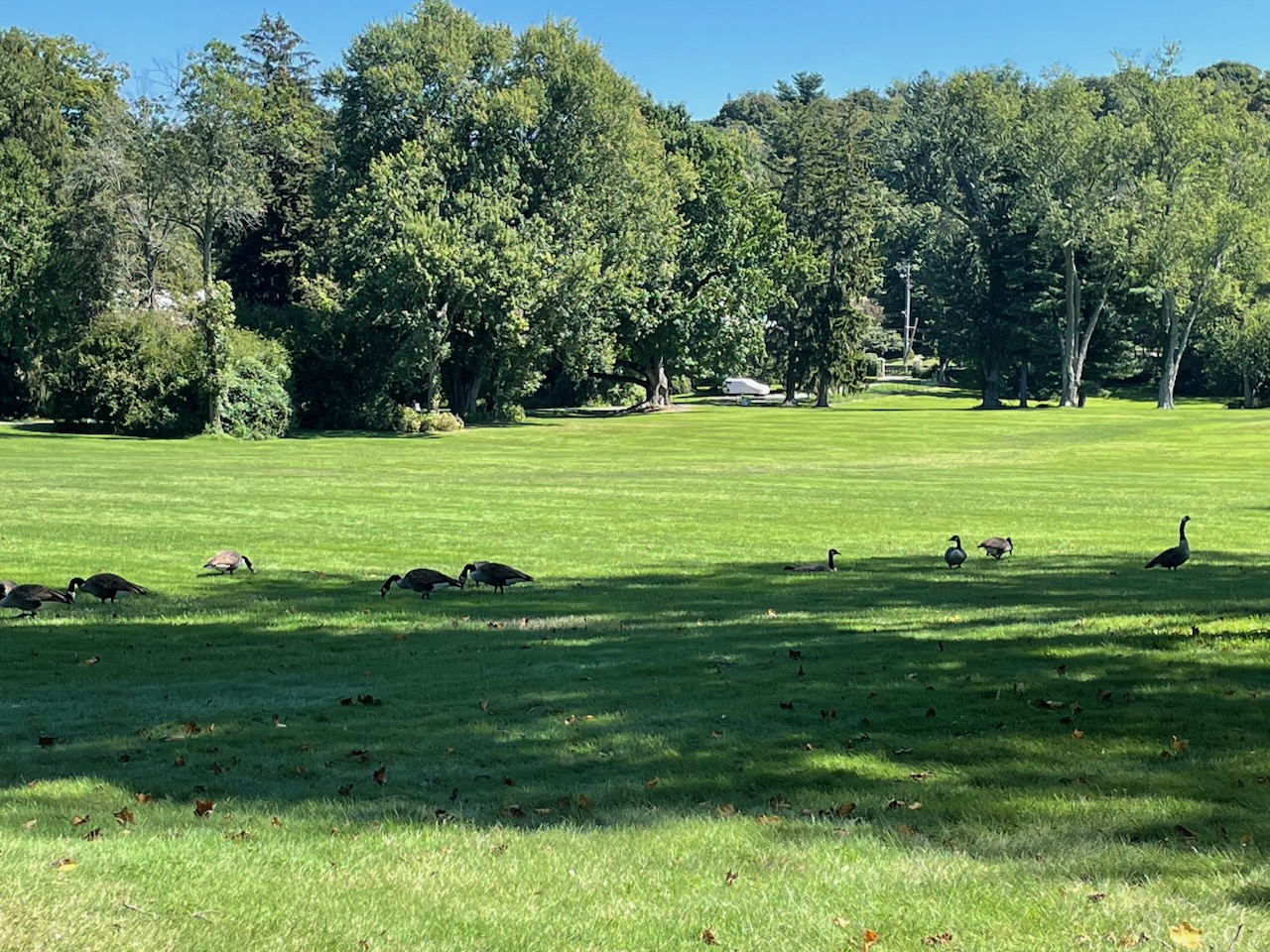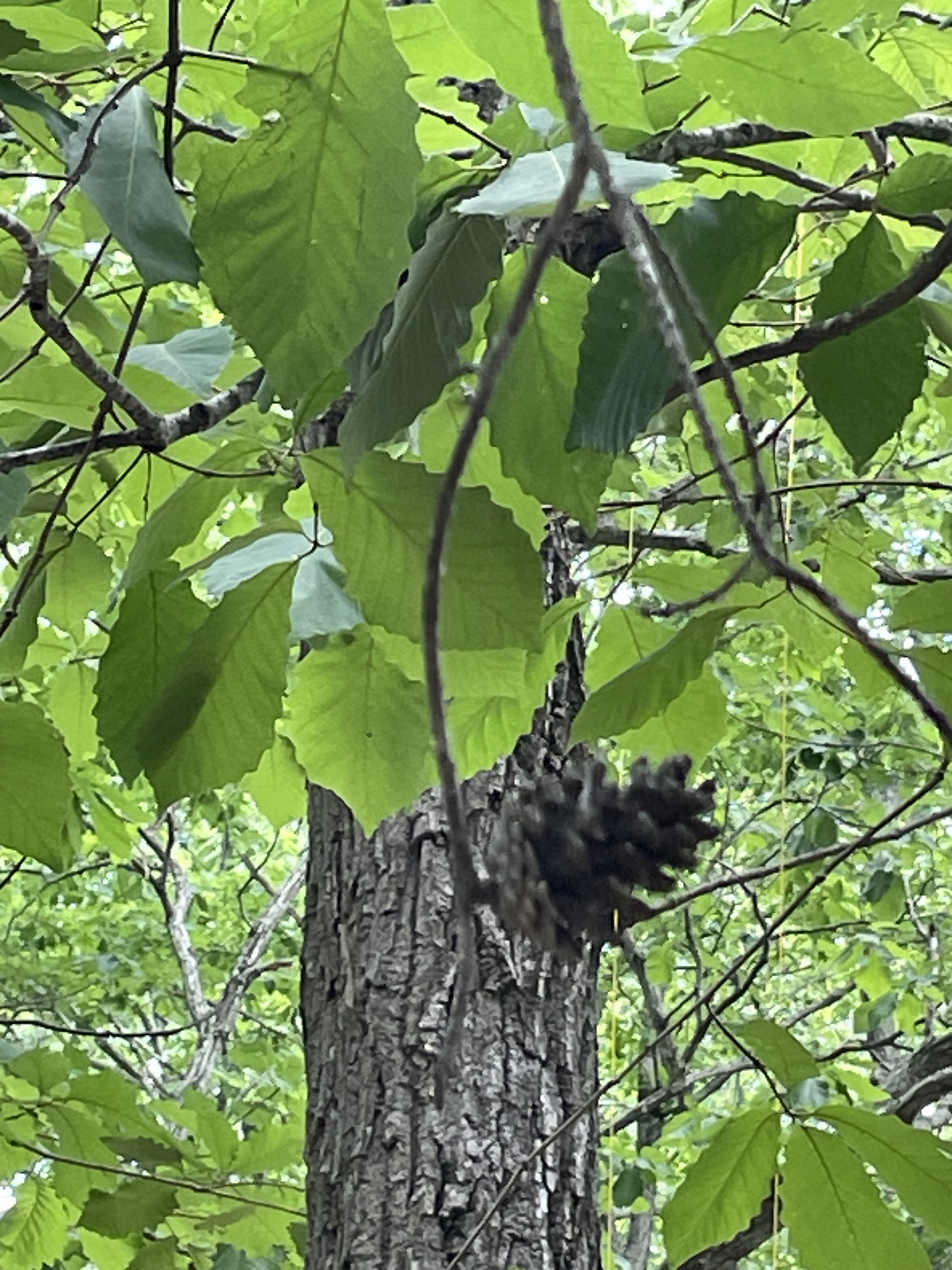 Of course, that more than whets my appetite to find this spectacular tree. But it’s not easy. Entering the park, we find massive white oaks and scarlet oaks. This is a mast year, and all around the ground is carpeted with acorns that crunch underfoot.