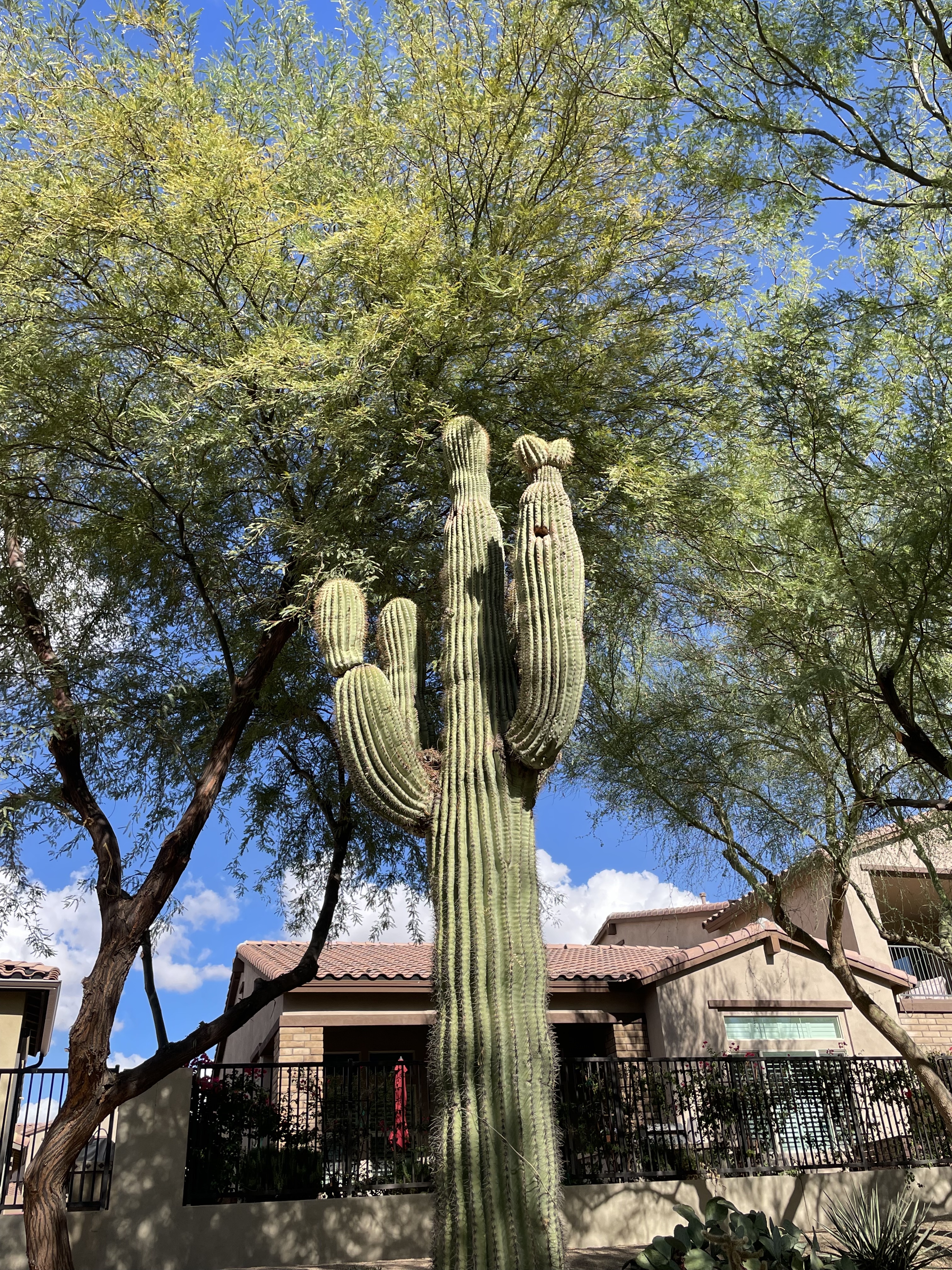Among other things, towering over the houses with health-giving shade, creating a beautiful fall carpet of leaves, and offering shelter for squirrels with a major nest. Oh yes, and uncomplainingly eating carbon and pouring out oxygen for us slackers to breathe.