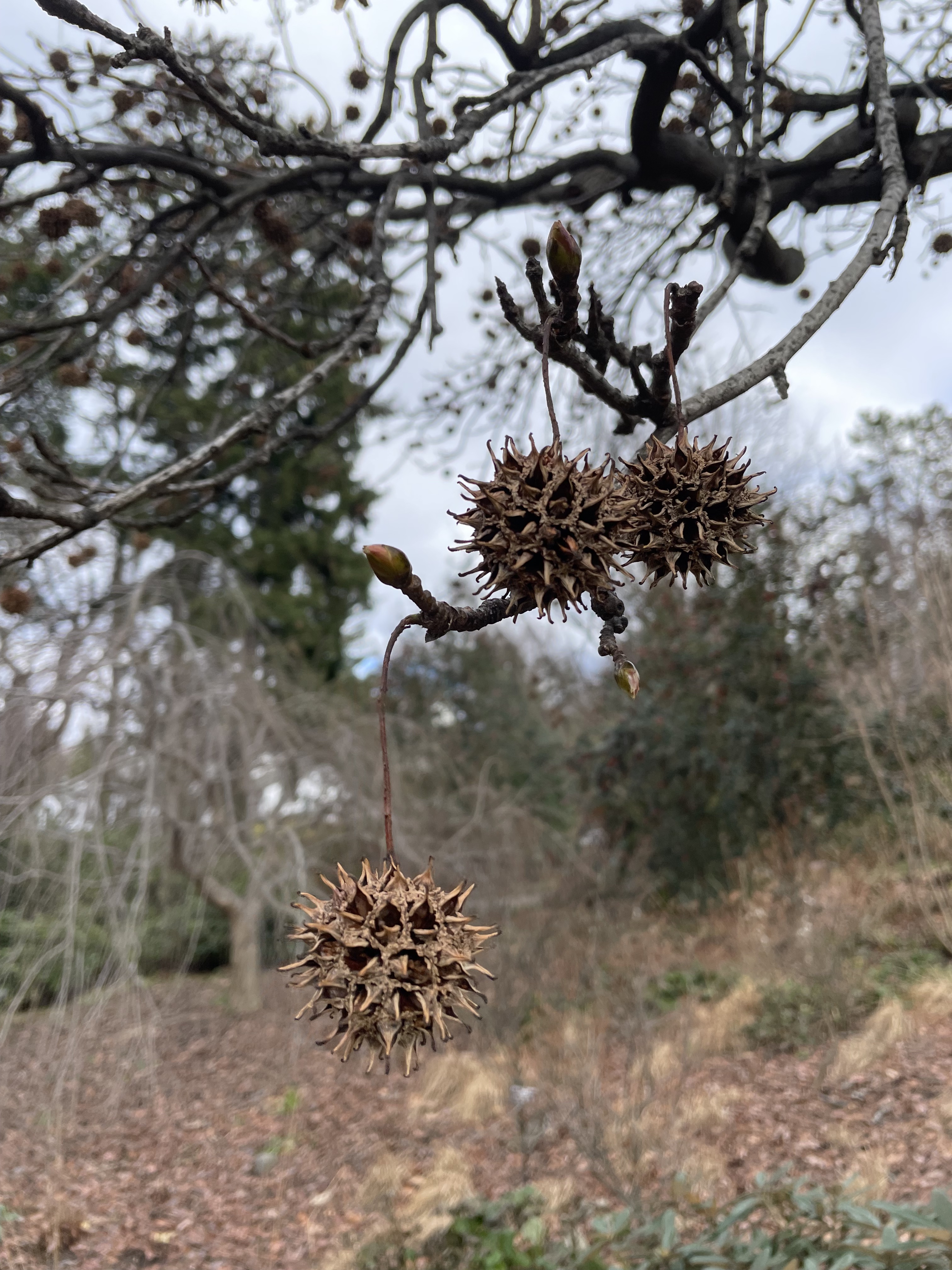 Their prickly seedballs are a marvel of the season.