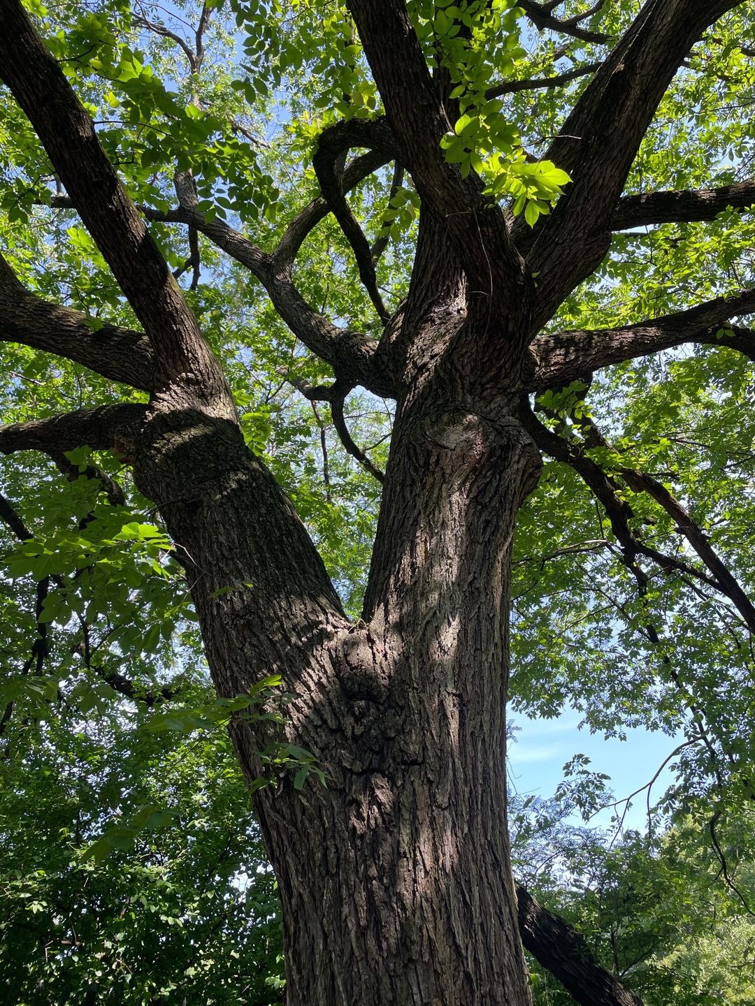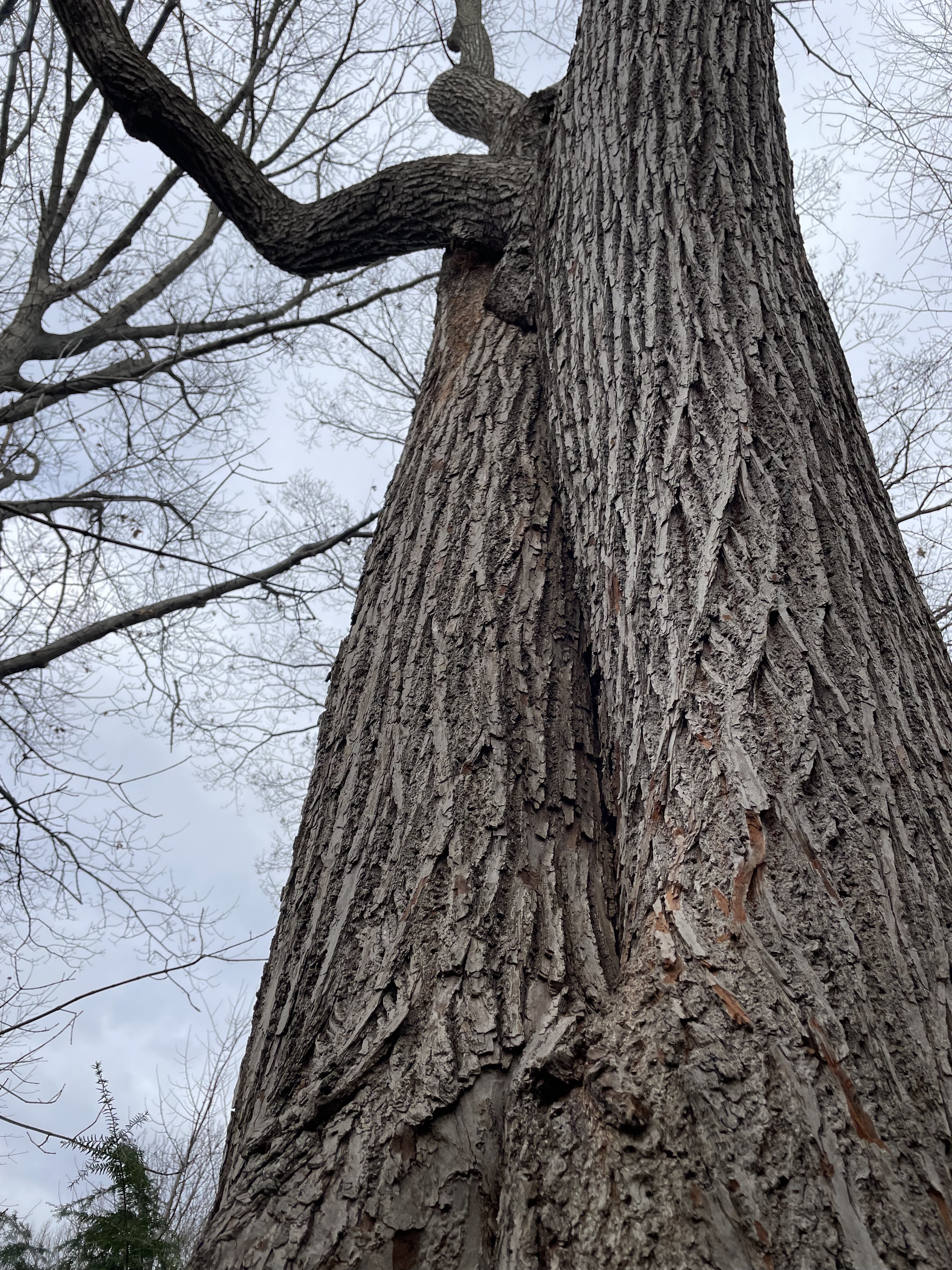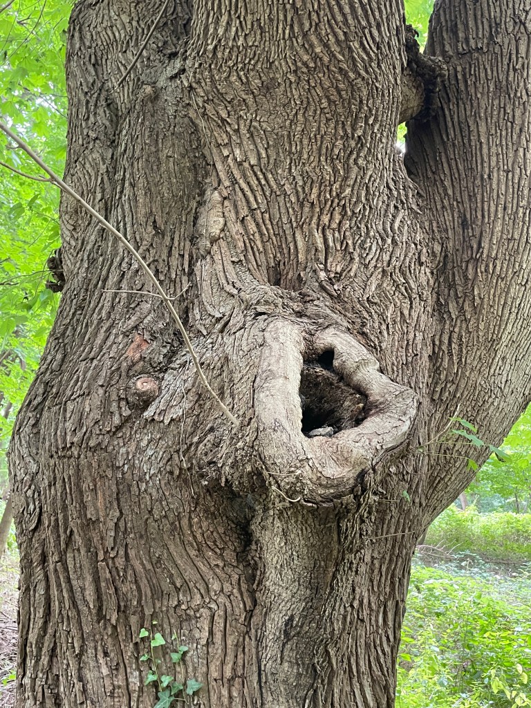 “This is one of the biggest, oldest trees in the park,” reads the nomination. “It provides habitat and food for our migratory and resident birds.” Its once-delicate lenticels have gone crusty with age.