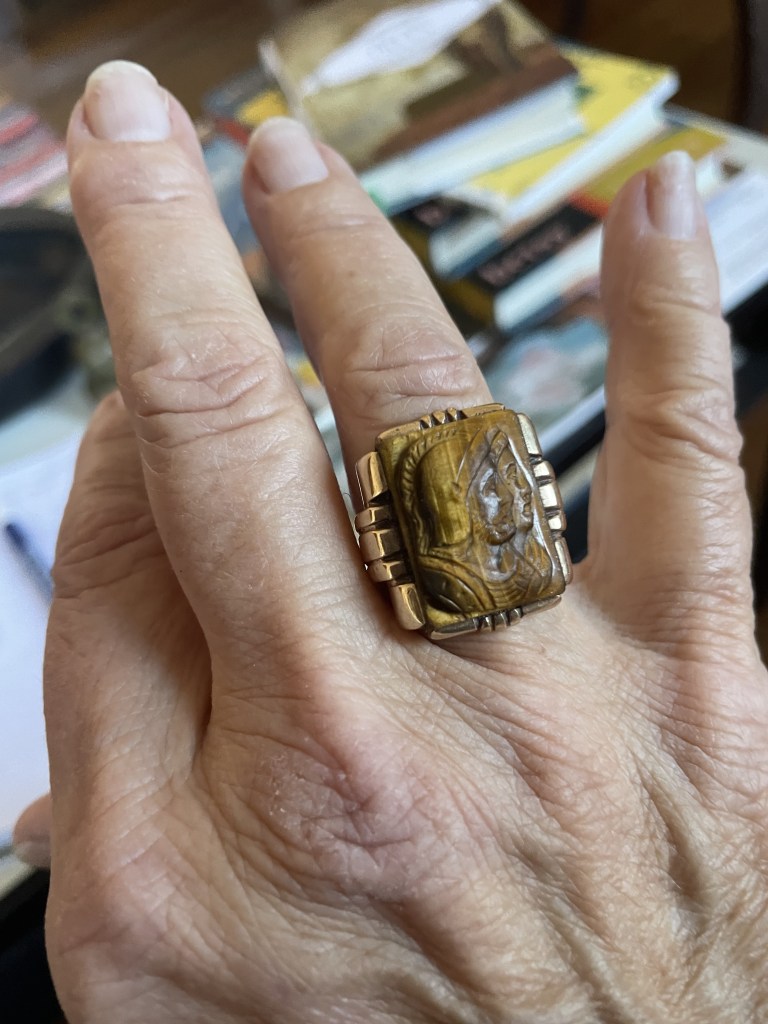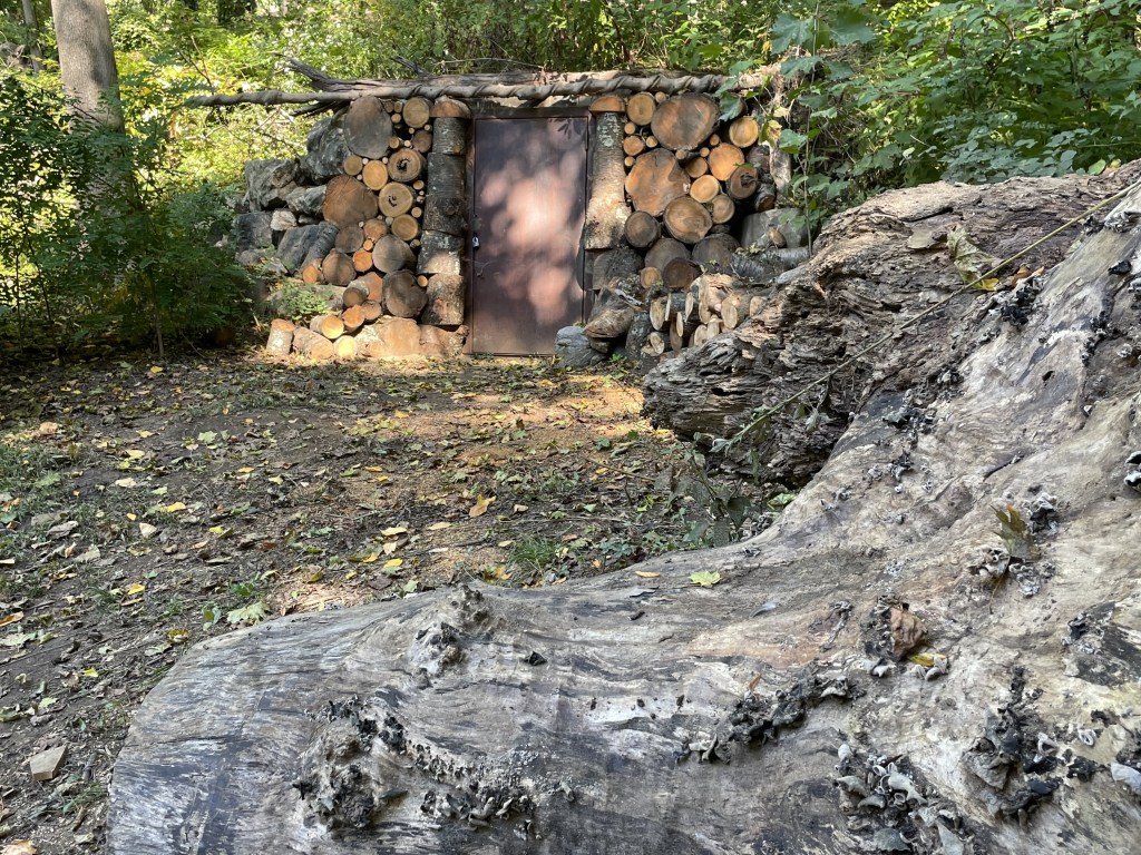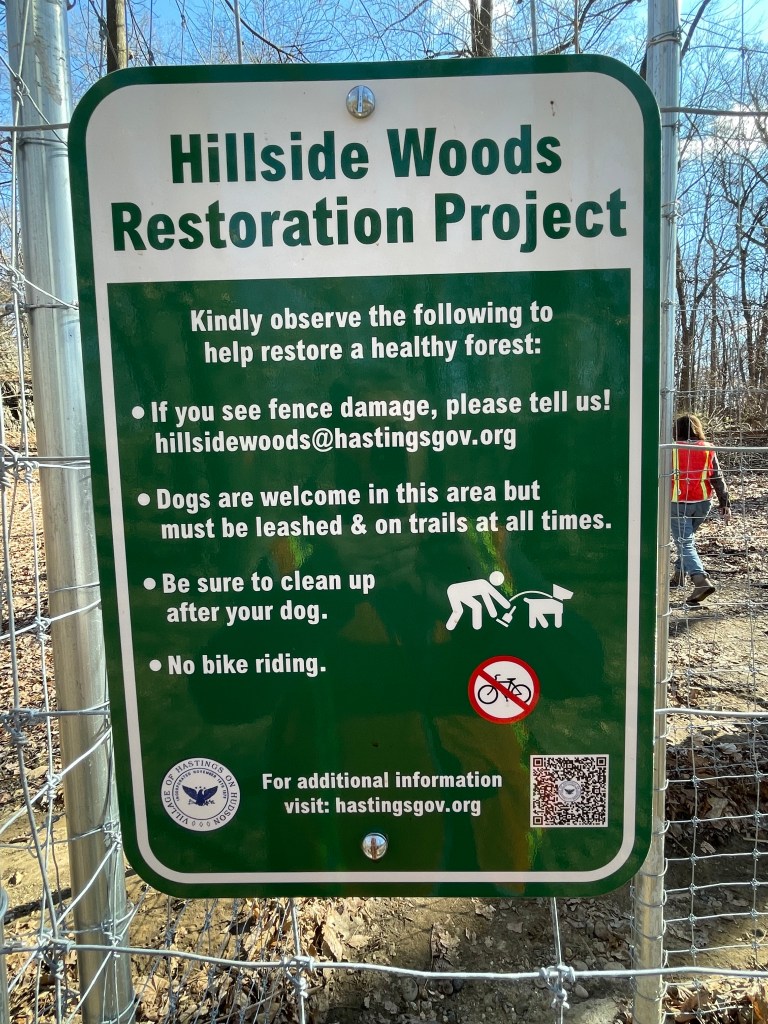 “At the edge of the forested land on Mosholu Parkway North, facing the apartment buildings.” Sounds mysterious, and I’m afraid we will not find it, especially as the gloaming comes on. We cadge a parking space and I walk directly to the tree as by a homing device.
