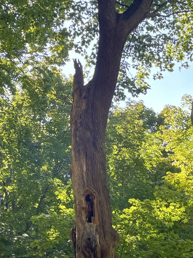 It is said to be larger than the state champion in Green-Wood Cemetery. And that’s saying something. “However, its true age will never be known because it is mostly hollow.”
