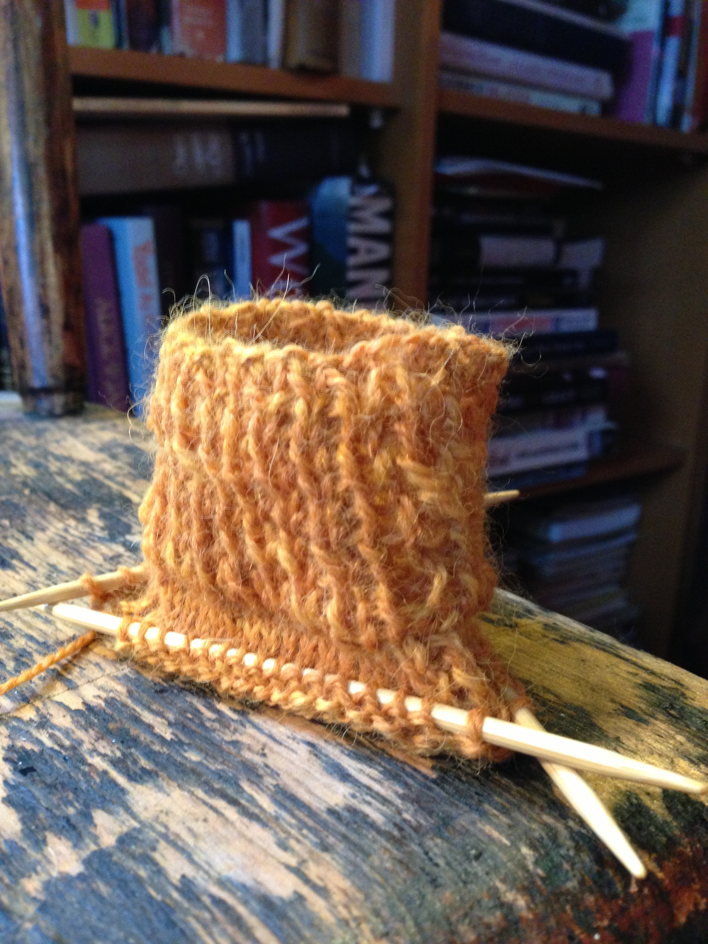 I liked another story Barbara told, too, about a knitting club that refused to be shut into one of the back rooms at a public library for their weekly stitch n’ bitch, but instead colonized a table in the center of the building. Well, a technology club soon discovered the knitters and found what they were doing interesting, and the two groups ended up knit-bombing the library – the mouse, the circulation desk, etc.