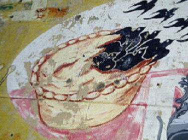 Tak gode Applys and gode Spryeis and Figys and reyfons and Perys and wan they are wel ybrayed colourd wyth Safron wel and do yt in a cofyn and do yt forth to bake well.