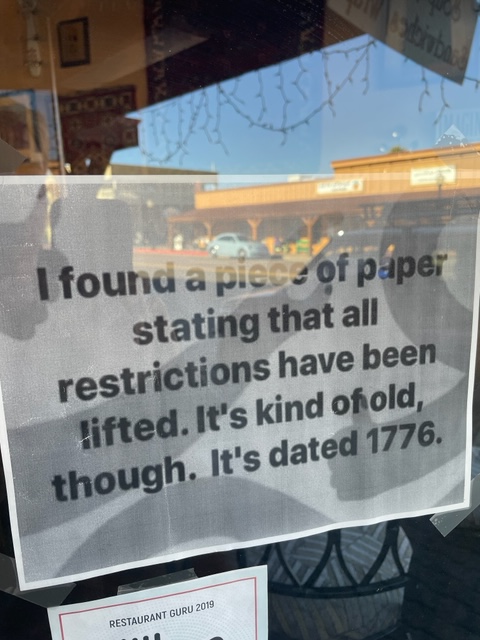 Signs outside of town announce Gold Panning Here and Abolish the IRS. A church sign says, “Trying times are times for trying.”