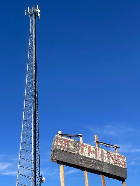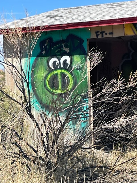 Also sublime in its own mysterious way. Founder Richard “Buddy” Kenworthy had a bar, a service station and a general store here, back in the ‘70s, but it all went south. The sign and an over-tagged shed are all that’s left.