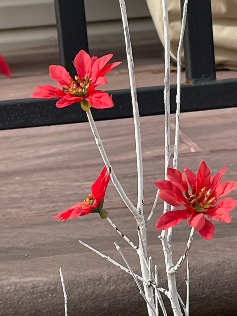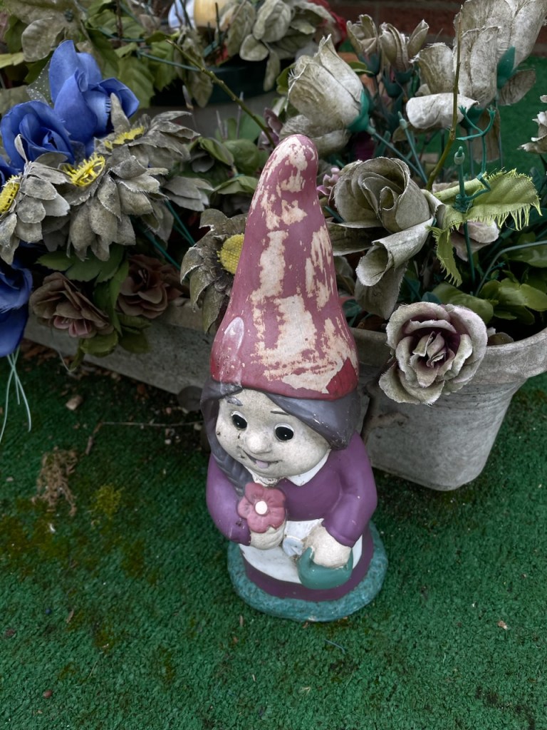 Edwina, let’s call this lovely specimen — gender fluid. Shading purple window-box flowers that glow beneath its canopy.