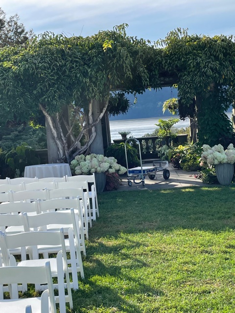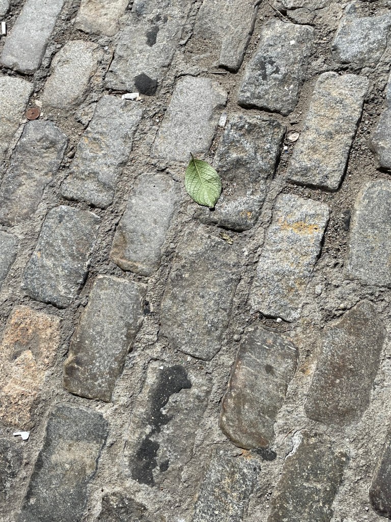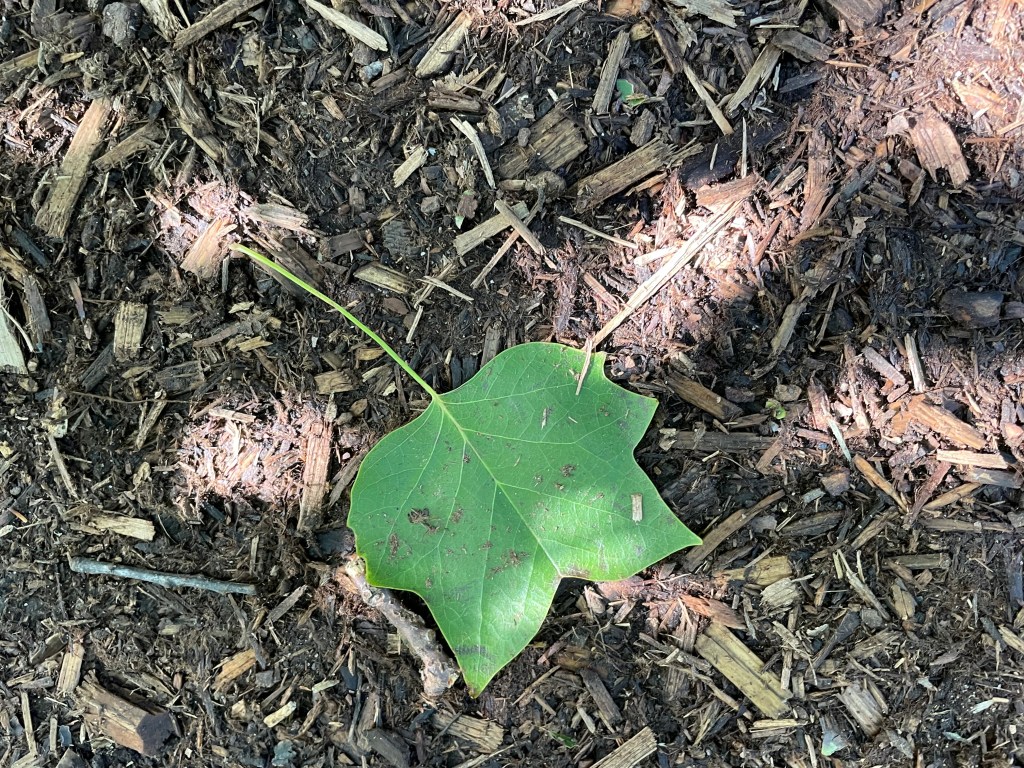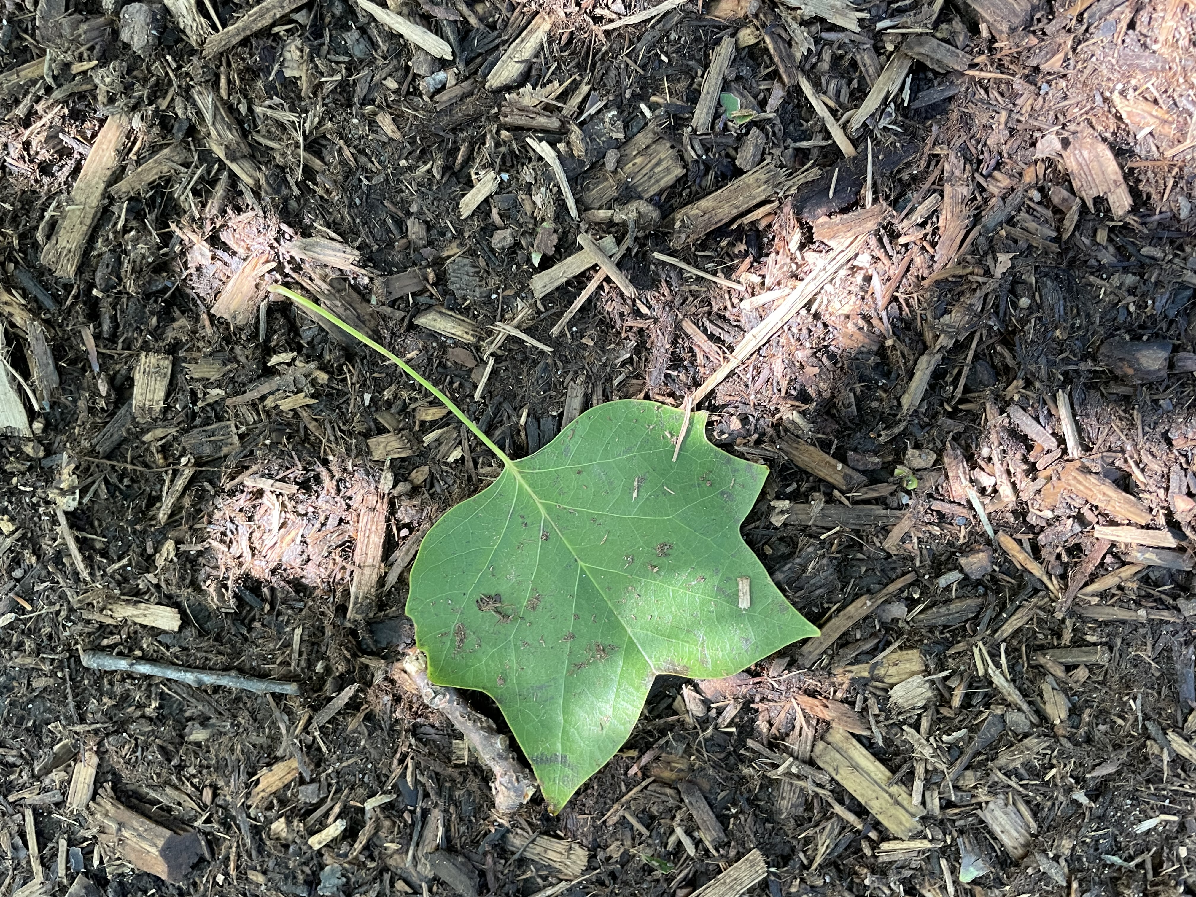 She was kind enough to drop leaf bouquets on the sidewalk and host a clutch of hostas in her lap.