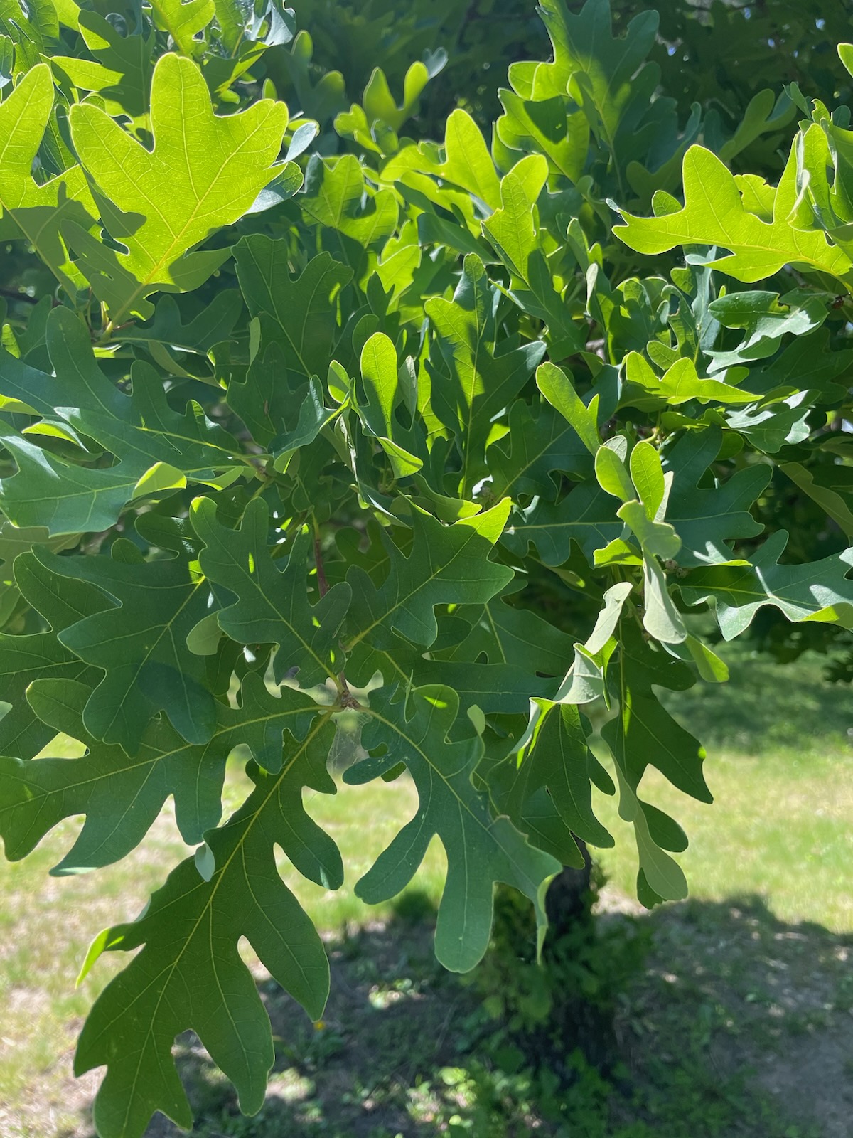 Wither the post oak? It’s a member of the white oak family, and all the trees in these woods have interbred for so long that I think any of them could be the oak in question. Though I cannot find the exact leaf, with its lobes that remind some of a Maltese cross, there are plenty of similar leaves.