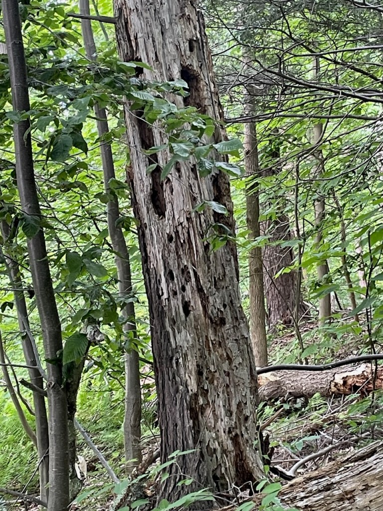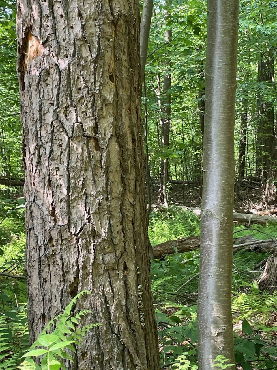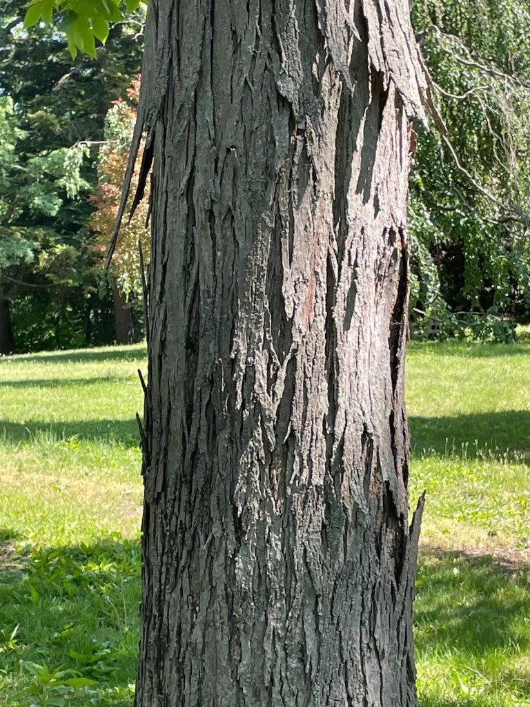 “This is one of the biggest, oldest trees in the park,” reads the nomination. “It provides habitat and food for our migratory and resident birds.” Its once-delicate lenticels have gone crusty with age.