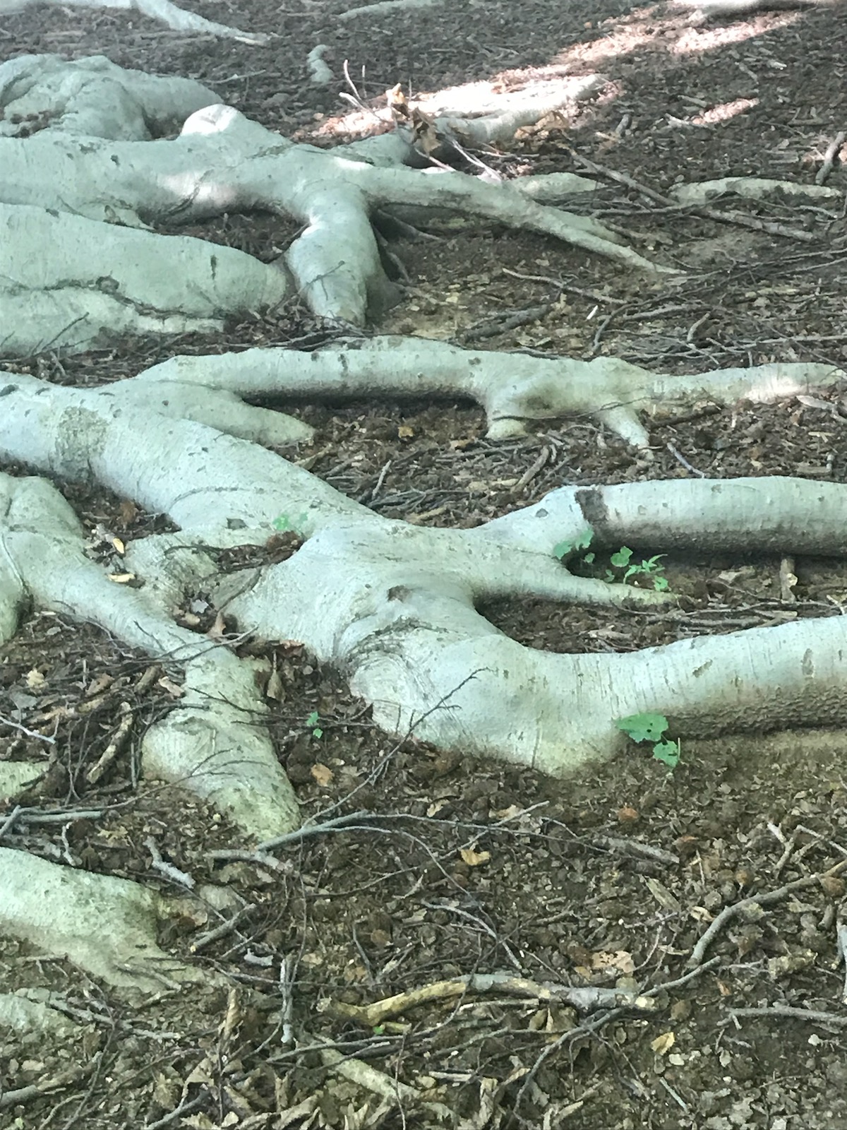 The other, though, down a slope, I like just as much. She has bark that has been scarified over the years by people engraving their initials and hearts.
